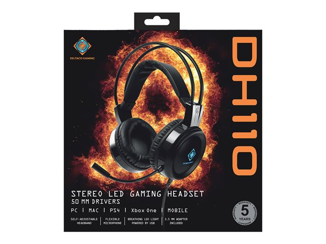 DELTACO GAMING GAM-105 - Headset - fullstorlek - kabelansluten - 3,5 mm kontakt - svart
