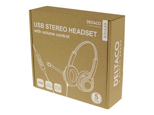 DELTACO Office DELO-0652 - Headset - på örat - kabelansluten - USB-A - svart - Certifierad för Microsoft-teams, Cisco Webex Certified