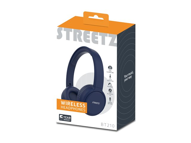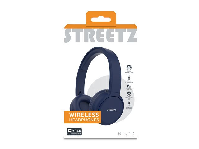 STREETZ BT210 - Hörlurar med mikrofon - på örat - Bluetooth - trådlös, kabelansluten - 3,5 mm kontakt - blå