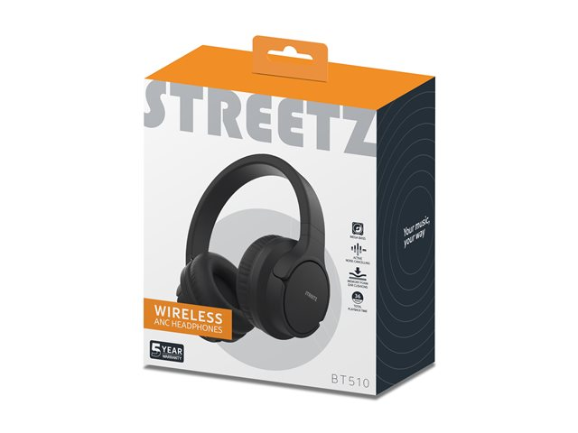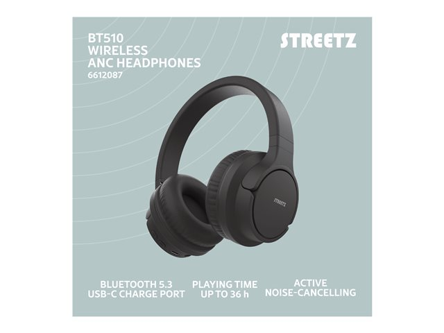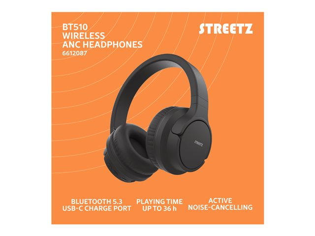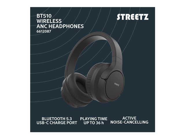 STREETZ BT510 - Hörlurar med mikrofon - på örat - Bluetooth - trådlös - aktiv brusradering - svart