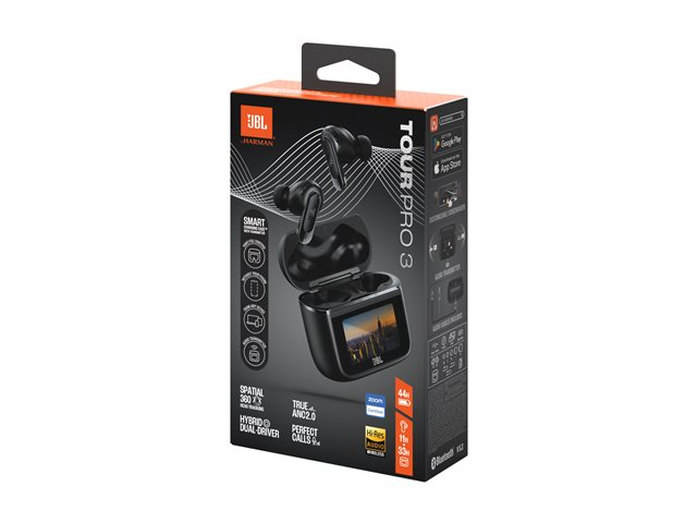 | Produktbeskrivning | JBL Tour Pro 3 - True wireless-hörlurar med mikrofon - inuti örat - Bluetooth - aktiv brusradering - svart - Zoomcertifierad |