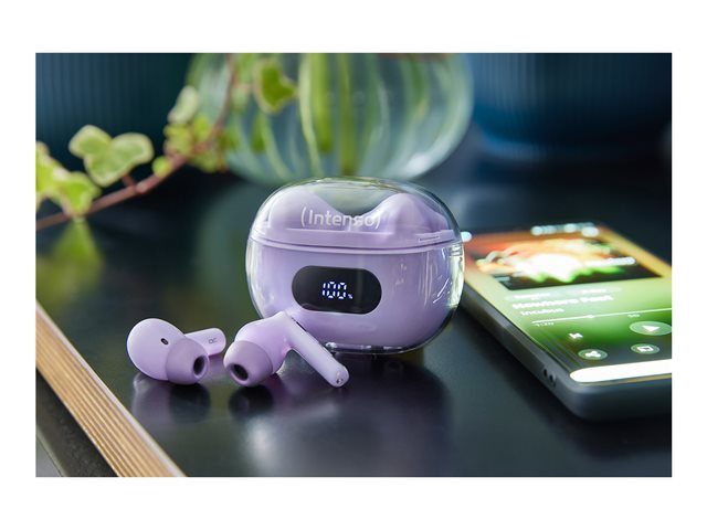 | Produktbeskrivning | Intenso T310AE - True wireless-hörlurar med mikrofon - inuti örat - Bluetooth - aktiv brusradering - lila |