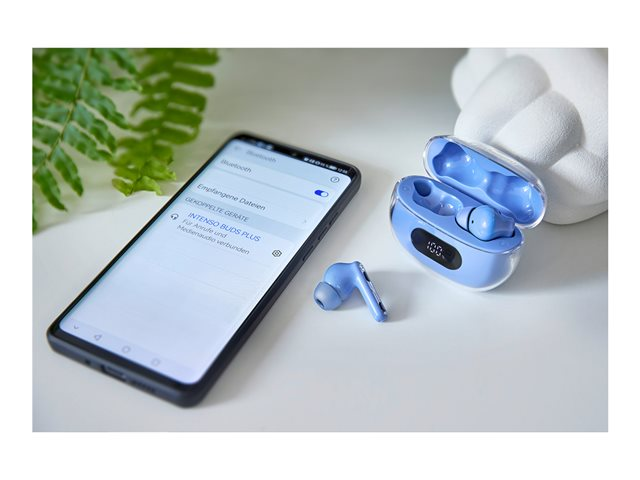 | Produktbeskrivning | Intenso T310AE - True wireless-hörlurar med mikrofon - inuti örat - Bluetooth - aktiv brusradering - blå |