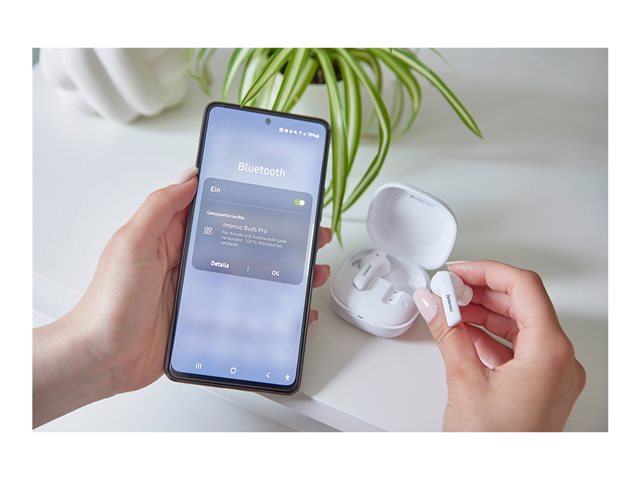 Intenso T500HAE - True wireless-hörlurar med mikrofon - inuti örat - Bluetooth - aktiv brusradering - vit