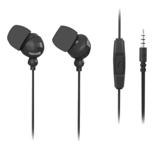 Maxell Plugz + Mic - Hörlurar med mikrofon - inuti örat - kabelansluten - 3,5 mm kontakt - svart