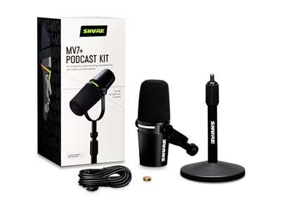 Produktbeskrivning | Shure MV7+K-BNDL - Mikrofon - 3-stifts XLR, USB - svart - med Shure-by-Gator skrivbordstativ - OBS-certifierad, MFi-certifierad |