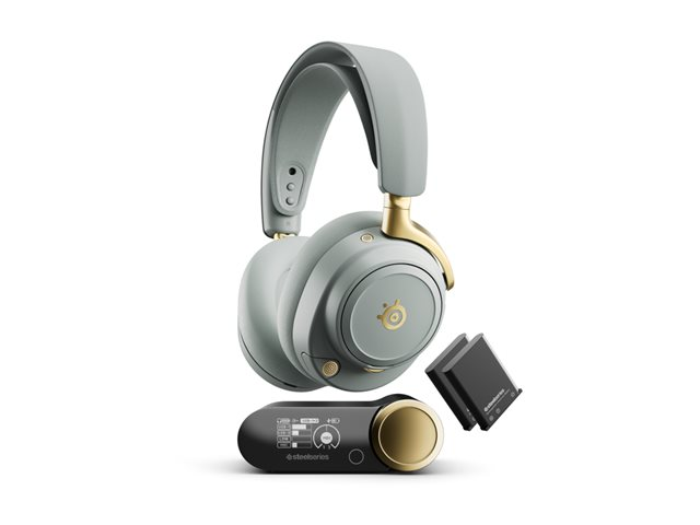Produktbeskrivning | SteelSeries Arctis Nova Elite - Headset - fullstorlek - Bluetooth/radiofrekvens 2,4 GHz - trådlös - USB-C - salvia, guld |