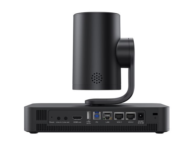 | Egenskaper | 4 linser, återställningsknapp, inbyggt sekretesskydd, AI-brusreducering, utan efterklang, IntelliFrame-teknik, räkning av mötesdeltagare, IntelliFocus support, högtalarspårning, presentatörsspårning, Video Fence support, PIP-stöd, automatisk bildfrekvens, 4 camera presets, 2 x 51° DFOV / 41.6° HFOV / 32° VFOV Telephoto, 110° DFOV / 98° HFOV / 82° VFOV Panoramic, 69° DFOV / 61.5° HFOV / 36° VFOV PTZ |