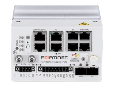 | Produktbeskrivning | Fortinet FortiGate Rugged 70G - Säkerhetsfunktion - 1GbE, Bluetooth LE - molnhanterad kan monteras på skena |