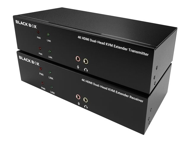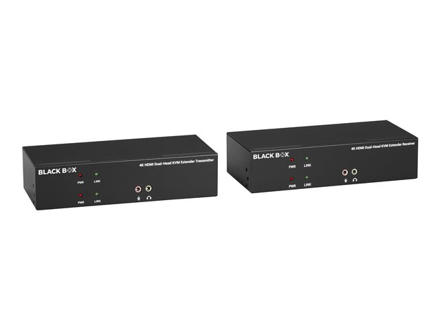 Black Box KVX Series KVM Extender over CATx - Dual-Head, DVI-I, USB 2.0, Serial, Audio, Local Video - Förlängare för tangentbord/video/mus/seriell/USB - USB - upp till 100 m - 1U - TAA-kompatibel