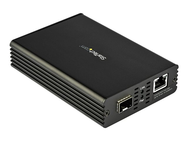 | Produktbeskrivning | StarTech.com 10 GbE-fiber-Ethernet-mediaomvandlare för 1/2,5/5/10 Gbps nätverk NBASE-T SFP till RJ45 Multigigabit enkelläges/flerläges fiberoptiskt till kopparnätverksbaserat Ethernet till Fiber Bridge - Fibermediekonverterare - 10GbE - 10GBase-T, 10GBase-LR, 10GBase-SR - RJ-45 / SFP+ |