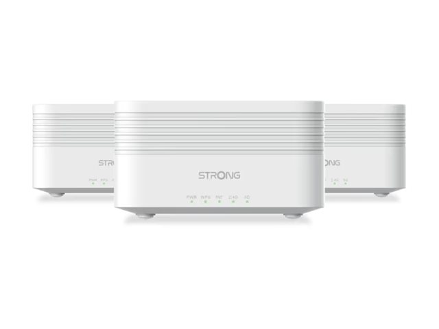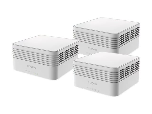 | Produktbeskrivning | Strong ATRIA Wi-Fi Mesh Extenter Trio AX3000 - Wifi-system - (3 routrar/förlängare) - upp till 525 kvadratmeter - mesh 1GbE - Wi-Fi 6 - Dubbelband |