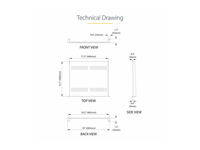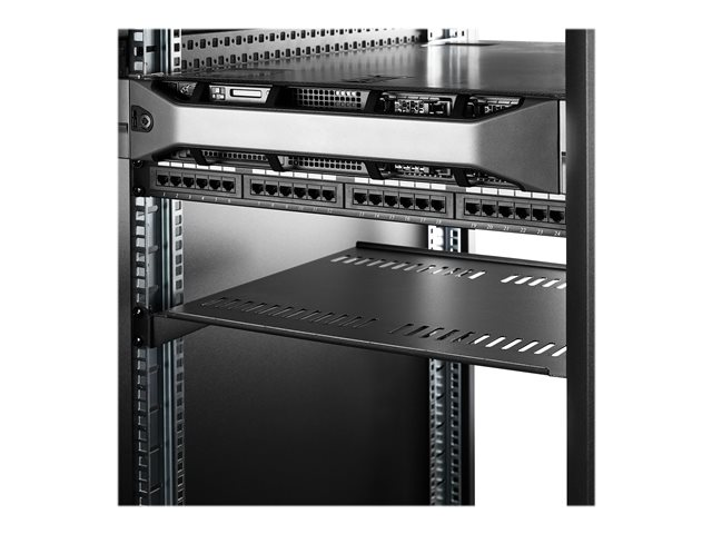 Universell ventilerad fribärande serverhylla med rackfäste för 19-tums nätverksutrustning i rack och skåp - Kraftigt stål - Viktkapacitet 20 kg - 41 cm djup hylla, svart - hylla för rack - 1U