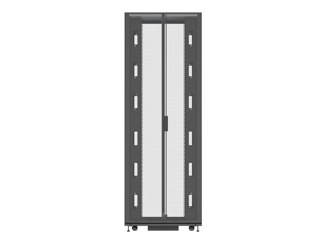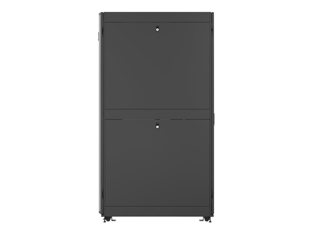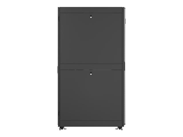 | Förpackningens innehåll | 4 hjul, övre panel, hjul med låg profil, tangenter, delad perforerad bakdörr, bakre kabelingång i övre panel, nivelleringsfötter, inbyggnadssats, 2 delade och låsta sidopaneler, delad perforerad ytterdörr, 2 x 19-tums monteringsskenor, 2 x PDU-fästen, fästbultar |