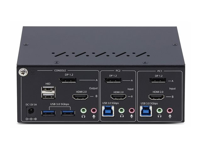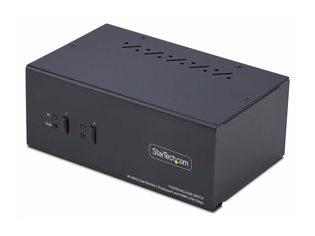 | Produktbeskrivning | StarTech.com 2-Port Dual-Monitor DisplayPort en HDMI KVM Switch, 4K 60Hz - Omkopplare för tangentbord/video/mus/ljud/USB - 2 x KVM/ljud/USB - 1 lokal användare - skrivbordsmodell - TAA-kompatibel |