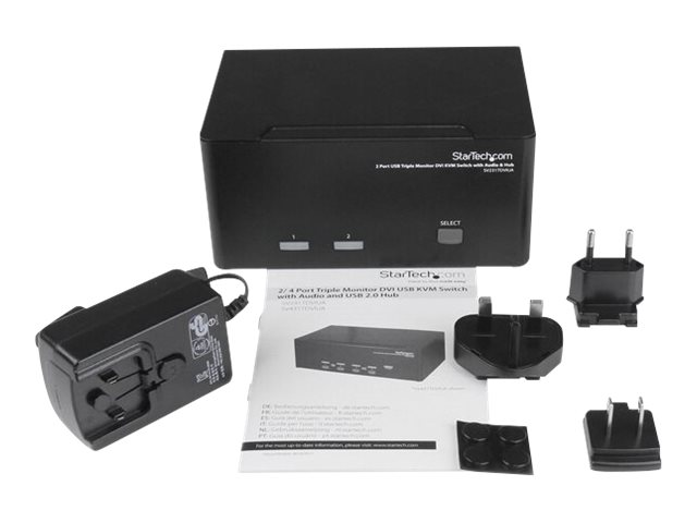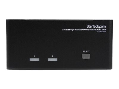 | Produktbeskrivning | StarTech.com DVI USB KVM-switch för tre skärmar med 2 portar, audio och USB 2.0-hubb - Omkopplare för tangentbord/video/mus/ljud/USB - 2 x KVM/ljud/USB - 1 lokal användare - skrivbordsmodell - för P/N: SVA12M2NEUA, SVA12M5NA |