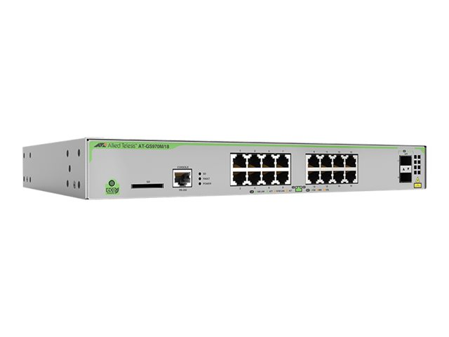 | Produktbeskrivning | Allied Telesis CentreCOM AT-GS970M/18 - Switch - L3 - Administrerad - 16 x 10/100/1000 + 2 x SFP (mini-GBIC) (upplänk) - skrivbordsmodell, rackmonterbar |