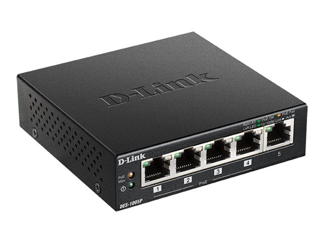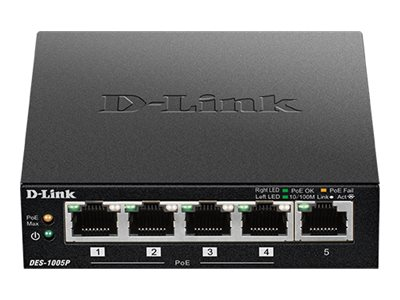 D-Link DES 1005P - Switch - ohanterad - 4 x 10/100 + 1 x 10/100 (PoE) - skrivbordsmodell - PoE
