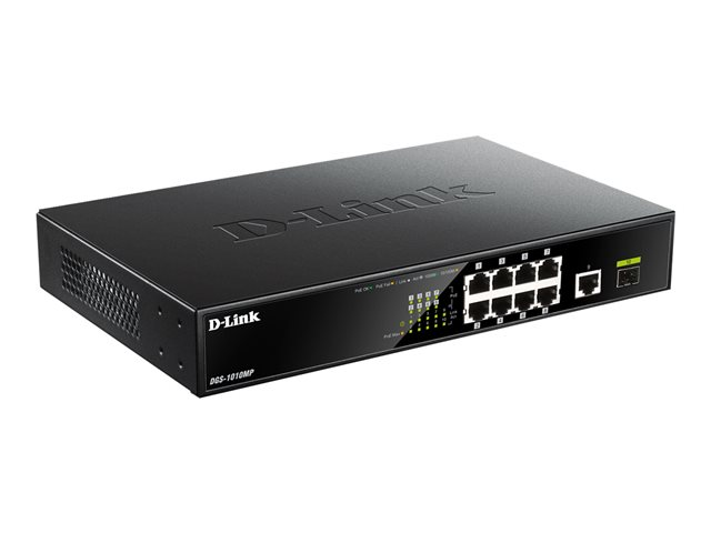 | Produktbeskrivning | D-Link DGS 1010MP - Switch - ohanterad - 8 x 10/100/1000 (PoE+) + 1 x 10/100/1000 (upplänk) + 1 x 1000Base-X SFP (upplänk) - skrivbordsmodell, rackmonterbar - PoE+ (125 W) |