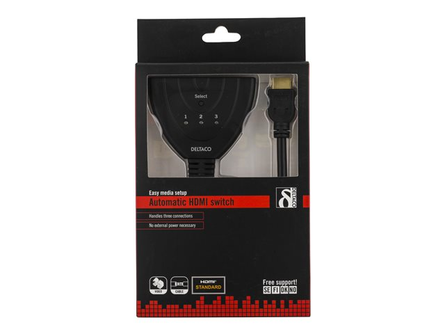DELTACO HDMI-7001 - Video-/ljudomkopplare - 3 x HDMI - skrivbordsmodell
