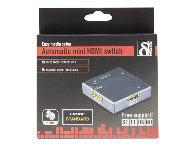 DELTACO HDMI-7002 - Video-/ljudomkopplare - 3 x HDMI - skrivbordsmodell