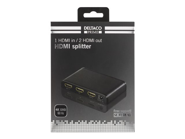 DELTACO PRIME HDMI-245 - Video/audiosplitter - 2 x HDMI - skrivbordsmodell