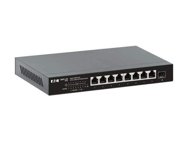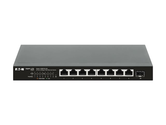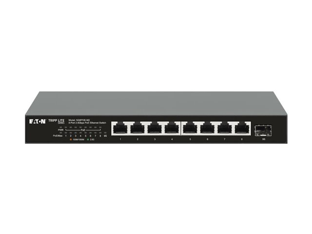 Produktbeskrivning | Eaton Tripp Lite series Desktop Gigabit Ethernet Unmanaged Switch, PoE+ Pass-Through 8-Port 2.5 Gbps 100W Metal - Switch - ohanterad - 8 x 10/100/1000/2.5G (PoE+) + 1 x 10 Gigabit SFP+ (upplänk) - skrivbordsmodell, väggmonterbar - PoE+ (100 W) - TAA-kompatibel |