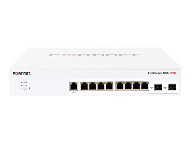 | Produktbeskrivning | Fortinet FortiSwitch 108E-FPOE - Switch - Administrerad - 8 x 10/100/1000 (PoE+) + 2 x Gigabit SFP - rackmonterbar - PoE+ (130 W) |