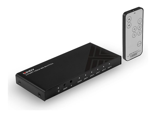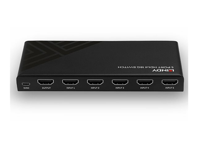 Lindy 5 Port HDMI 2.0 18G Switch - Video-/ljudomkopplare - 5 x HDMI - skrivbordsmodell