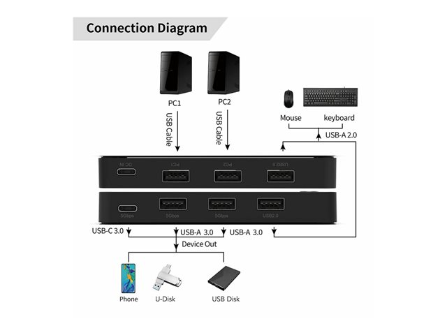 MicroConnect - Omkopplare för tangentbord/mus - 2 x USB 2.0 + 2 x SuperSpeed USB + 1 x USB-C - 2 lokala användare - skrivbordsmodell