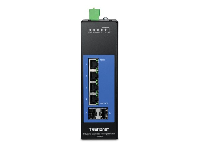 | Produktbeskrivning | TRENDnet TI-G642I - Switch - Administrerad - 4 x 10/100/1000 + 2 x Gigabit SFP - DIN-skenmonterbar - likström - TAA-kompatibel |