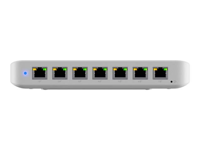 | Produktbeskrivning | Ubiquiti UniFi Switch Ultra 210W - Switch - Administrerad - 7 x 10/100/1000 (PoE+) + 1 x 10/100/1000 (PoE++) - skrivbordsmodell, väggmonterbar - PoE++ (202 W) - AC |