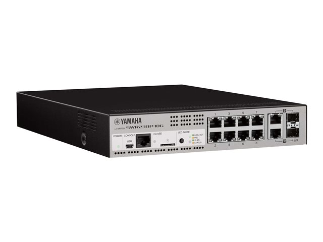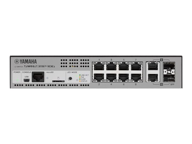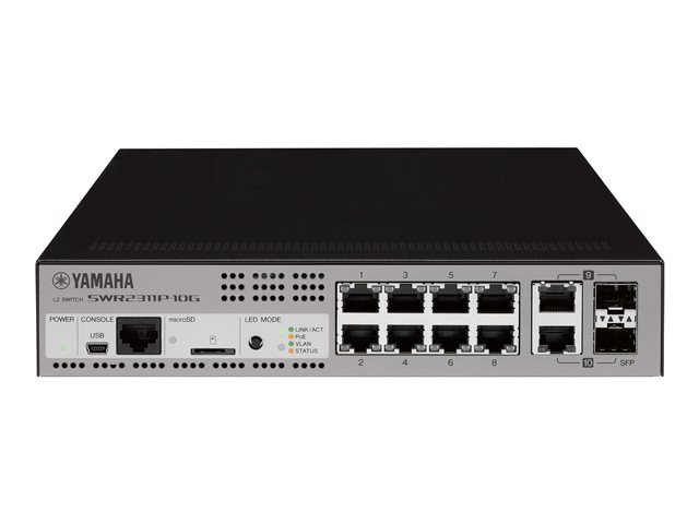 Produktbeskrivning | Yamaha SWR2311P-10G - Switch - 8 x 10/100/1000 (PoE+) + 2 x kombination Gigabit Ethernet/Gigabit SFP - skrivbordsmodell - PoE+ (240 W) |