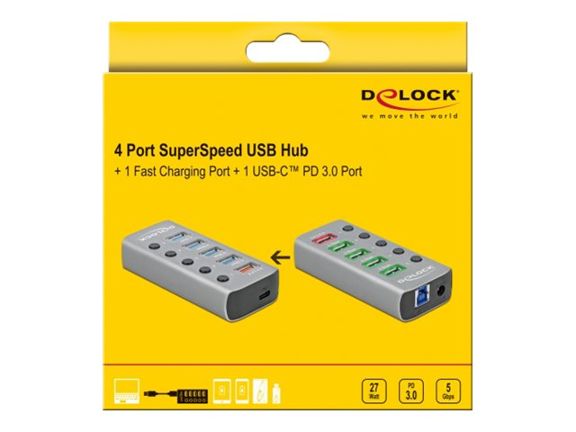 | Produktbeskrivning | Delock - Hubb - 4 x USB 3.2 Gen 1 - skrivbordsmodell |