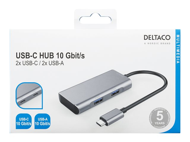 DELTACO USBC-HUB201 - Hubb - 2 x USB-C + 2 x USB