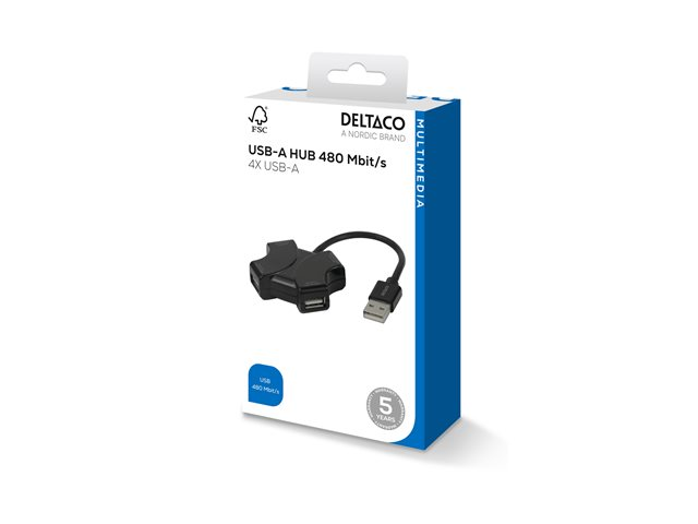 DELTACO - Hubb - 480 Mbps - 4 x USB - skrivbordsmodell