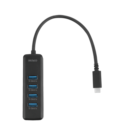 DELTACO - Hubb - 5 Gbps, USB-C - 4 x SuperSpeed USB 3.0 - skrivbordsmodell