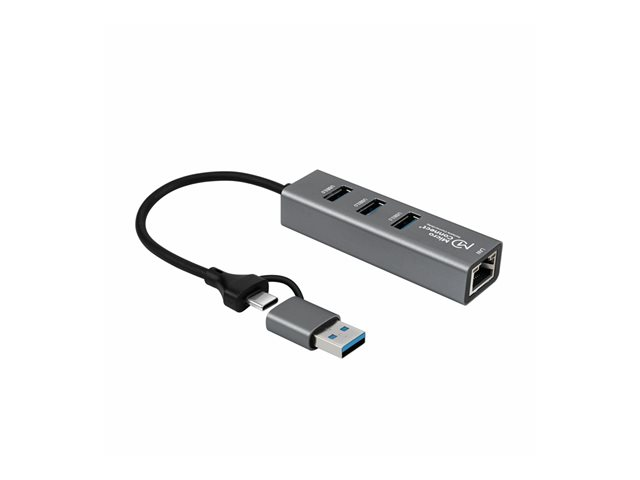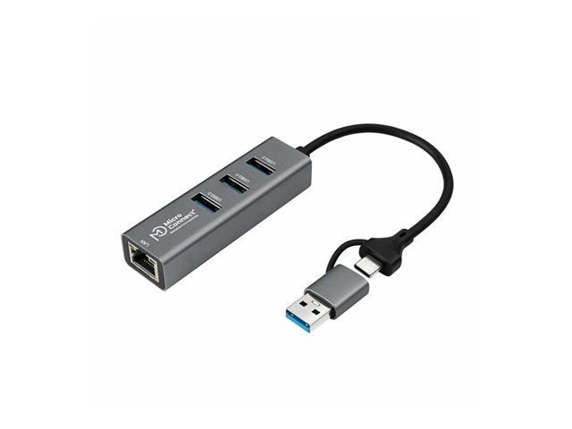 MicroConnect - Hubb - 3 x USB 3.2 Gen 1 + 1 x 1 Gigabit Ethernet - skrivbordsmodell
