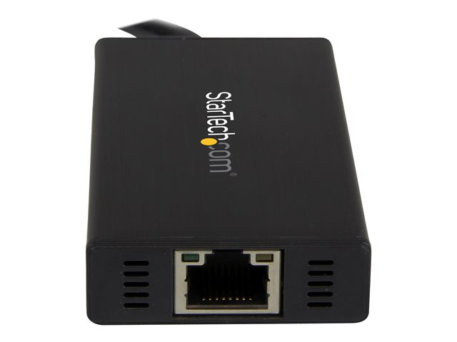| Produktbeskrivning | StarTech.com Bärbar USB 3.0-hubb med 3 portar plus Gigabit Ethernet - aluminium med inbyggd kabel - Hubb - 3 x SuperSpeed USB 3.0 + 1 x 10/100/1000 - skrivbordsmodell - för P/N: PEXUSB3S2EI, PEXUSB3S42, PEXUSB3S7, SVA5H2NEUA |