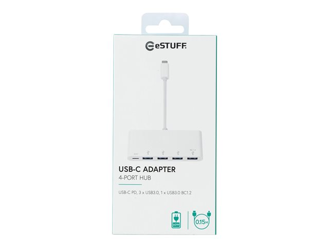 eSTUFF USB-C Charging hub - Hubb - 4 x SuperSpeed USB 3.0 x USB-C - skrivbordsmodell