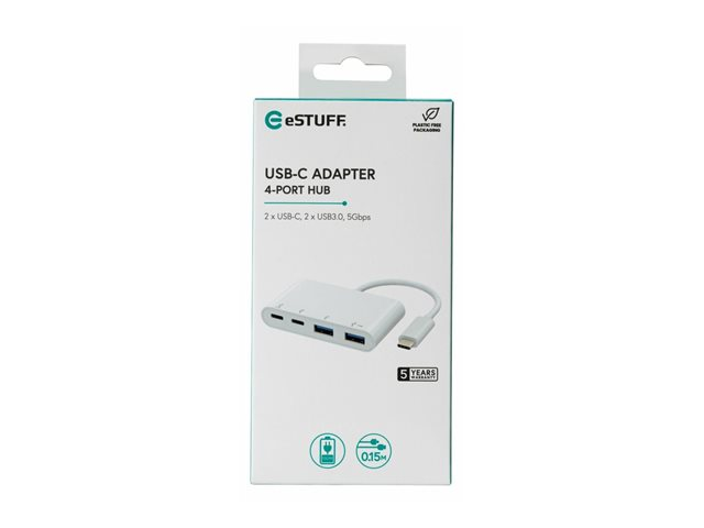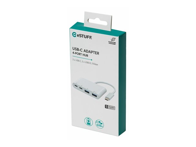 eSTUFF - Hubb - USB-C, 2x USB 3.0, 2x USB-C 3.1 - 4 x USB 3.2 Gen 2 - skrivbordsmodell