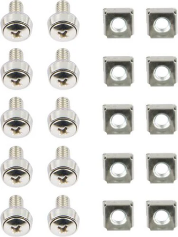 M6 skruvsats, stjärn, (brickor + skruvar + muttrar) 10-pack. Passar enbart till 19-serien skåp.