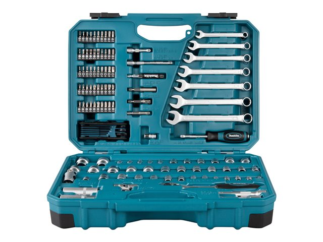 | Förpackningsinnehåll | 7 kombinationsnycklar (8-15 mm), 8 insexnycklar (1,5-8 mm), 2 skruvmejselbits - phillips PH0 x 25 mm, 2 skruvbits - phillips PH1 x 25 mm, 3 st. skruvmejselbits - phillips PH3 x 25 mm, 3 skruvmejselbits - phillips PH2 x 25 mm, 2 skruvbits - pozidriv PZ1 x 25 mm, 2 skruvmejselbits - pozidriv PZ0 x 25 mm, 3 skruvmejselbits - pozidriv PZ2 x 25 mm, 3 skruvmejsel bits - pozidriv PZ3 x 25 mm, 4 skruvmejselbits - hex 3, 4, 5, 6 mm x 25 mm, 2 skruvmejselbits - torx T15 x 25 mm, skruvmejselbits - tamper-proof torx TH8 x 25 mm, skruvmejselbits - tamper-proof torx TH9 x 25 mm, skruvmejselbits - tamper-proof torx TH10 x 25 mm, skruvmejselbits - tamper-proof torx TH20 x 25 mm, skruvmejselbits - tamper-proof torx TH25 x 25 mm, skruvmejselbits - tamper-proof torx TH27 x 25 mm, skruvmejselbits - tamper-proof torx TH30 x 25 mm, skruvmejselbits - tamper-proof torx TH40 x 25 mm, magnetisk bithållare - 60 mm, magnetisk skruvguideslä sleeve - 80 mm, adapter 1/4" hex till 1/2" fyrkant, 2 adaptrar 1/4" hex till 1/4" fyrkant, 6 skruvbits - spår 0,5, 0,8, 1 mm x 25 mm, 13 uttag 1/4" - 4, 4,5, 5, 5,5, 6, 7, 8, 9, 10, 11, 12, 13, 14 mm, 5 uttag 1/4" - torx E E4, E5, E6, E7, E8, förlängning 1/4 tum - 100 mm, förlängning 1/4 tum - 50 mm, universalled 1/4", skruvmejsel - fyrkant 1/4", 14 uttag 3/8 tum - 8, 9, 10, 11, 12, 13, 14, 15, 16, 3, 3, 3, 3, 3 mm, 6 stift 3/8" - torx E E10, E11, E12, E14, E16, E18, vinklad spännare - 3/8" - 72-tandad, förlängningsstång 3/8 tum - 150 mm, förlängningsstång 3/8 tum - 75 mm, adapter 3/8" fyrkant till 1/2" fyrkant, adapter 3/8" fyrkant till 1/4" fyrkant, universalt led 3/8", tändstiftsfäste - 16 mm, tändstiftsfäste - 21 mm, 8 skruvmejselbits - torx T8, T9, T10, T20, T25, T27, T30, T40 x 25 mm |