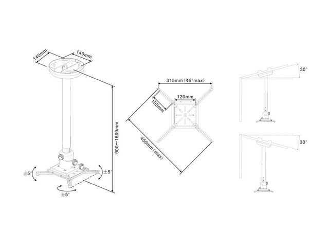 M Universal Projector Ceiling Mount 900-1600 with Fine tune monteringssats