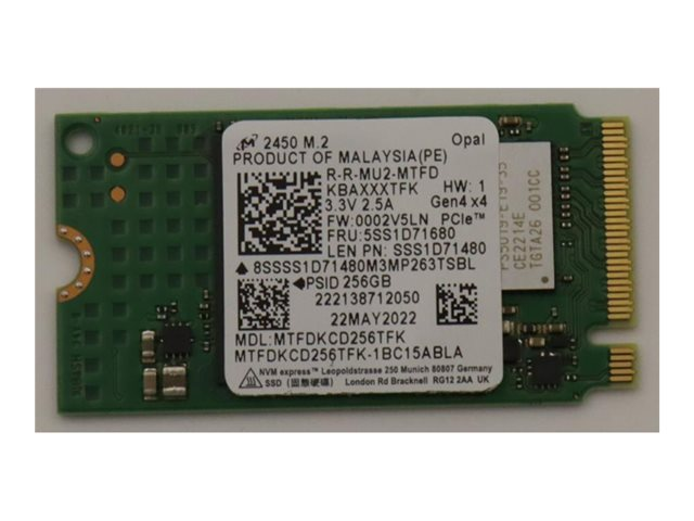 Micron - SSD - krypterat - 256 GB - inbyggd - M.2 2242 - PCIe 4.0 x4 - TCG Opal Encryption - för ThinkPad X12 Detachable 20UV, 20UW