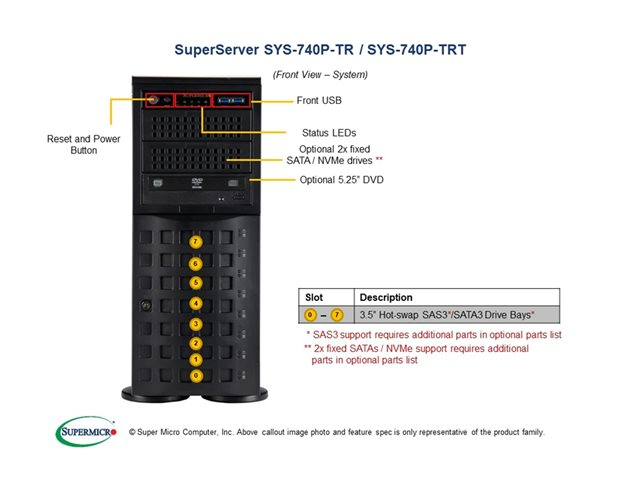 Supermicro Mainstream SuperServer 740P-TR - Server - tower - 4U - 2-vägs - ingen CPU upp till - RAM 0 GB - SATA - hot-swap 3.5" vik/vikar - ingen HDD - AST2600 - Gigabit Ethernet - inget OS - skärm: ingen - svart
