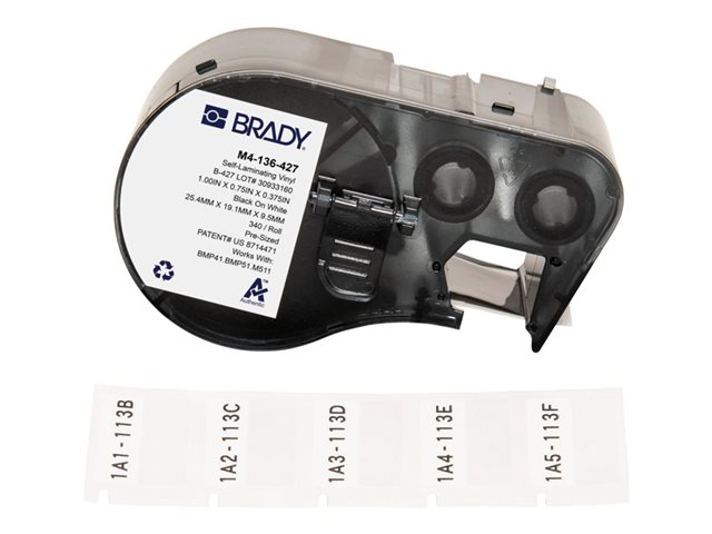 Brady B-427 - Vinyl - svart på vitt, klar - 25.4 x 19.1 mm 340 etikett (er) (1 rulle/rullar x 340 självlaminerande etiketter