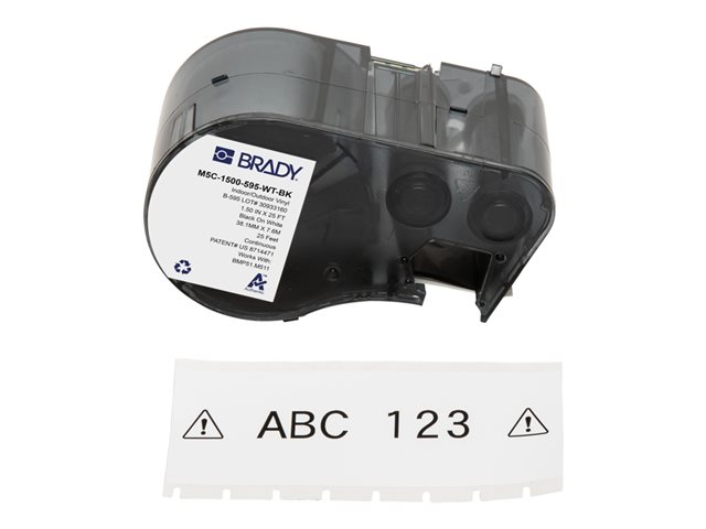 Brady - Vinyl - blank - permanent aggressivt akryllim - 102 mikron - svart på vitt - Rulle (3,81 cm x 7,62 m) 1 kassett(er) (1 rulle/rullar etiketttejp - för Brady BMP41, BMP51, M510, M511