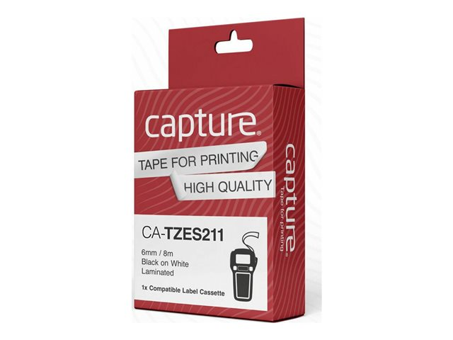 Capture - Nylon - svart på vitt - Rulle (0,6 cm x 8 m) 1 kassett(er) hängande låda - bandlaminat (alternativ för: Brother TZES211)