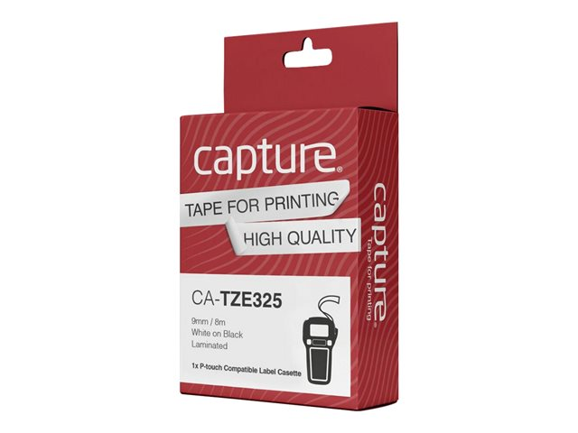 Capture - Nylon - vitt på svart - Rulle (0,9 cm x 8 m) 1 kassett(er) hängande låda - bandlaminat (alternativ för: Brother TZE325)